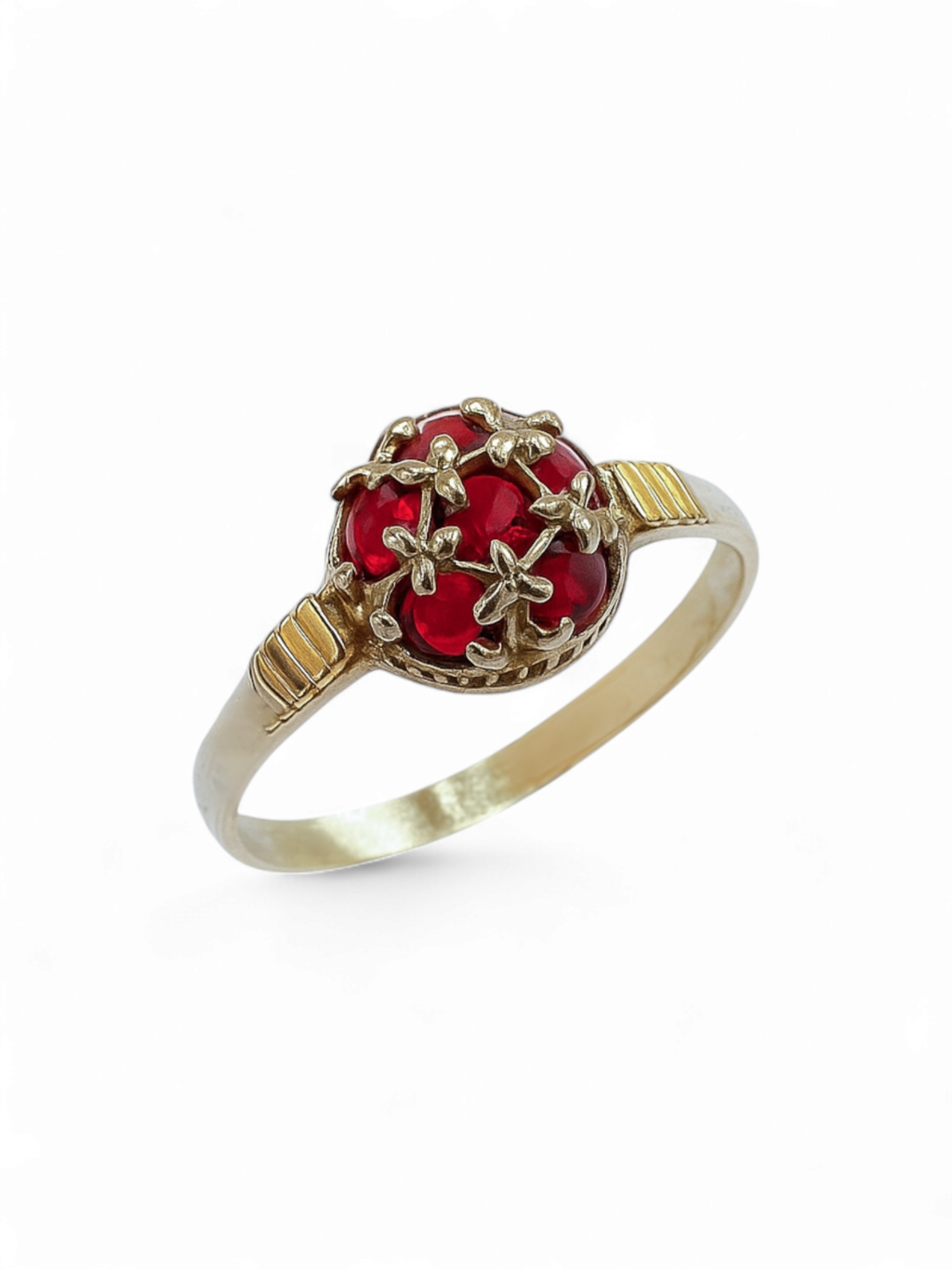 Dulce, delicado y con un toque vintage encantador, el anillo Frutillita está elaborado en plata 925, y embellecido con piedras tipo rubí que aportan un color rojo vibrante y femenino. Su diseño se completa con detalles en dublé (baño de oro) que realzan el contraste y le dan un acabado cálido y luminoso.