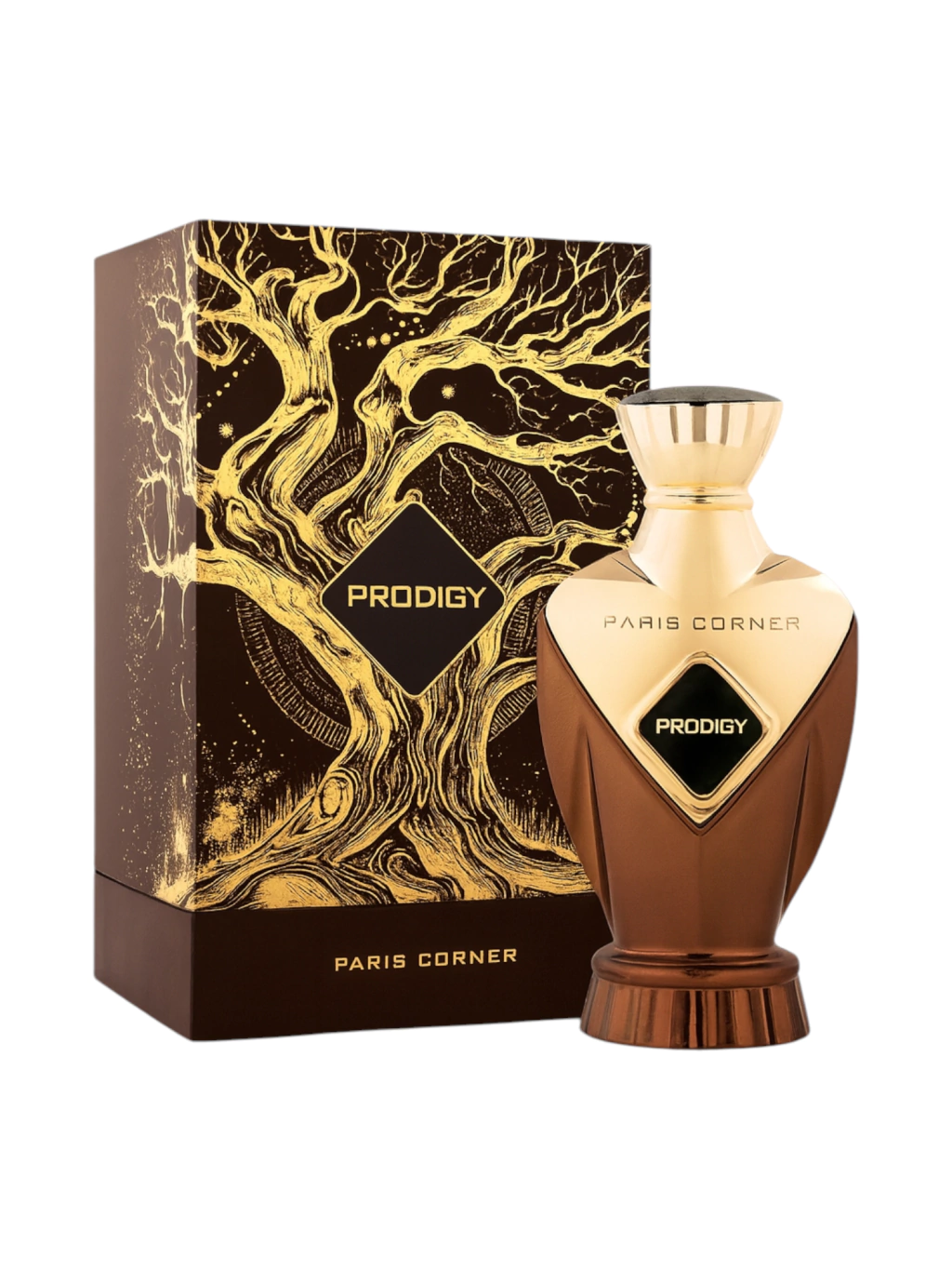 Prodigy de Paris Corner es un perfume amaderado ambarado, elegante y envolvente, inspirado en el exquisito Alexandria II de Xerjoff, ofreciendo una alternativa sofisticada y accesible dentro del mundo de las fragancias nicho. Diseñado para hombres con gusto refinado, combina calidez, dulzura y profundidad en una composición perfectamente equilibrada.